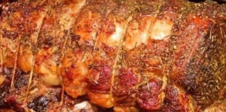 Place the onion slices in the bottom of a roasting pan. Put aside.