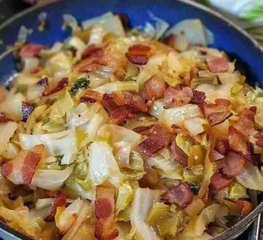 This dish is a comforting and flavorful addition to any meal. The combination of tender cabbage and crispy bacon is sure to be a hit.