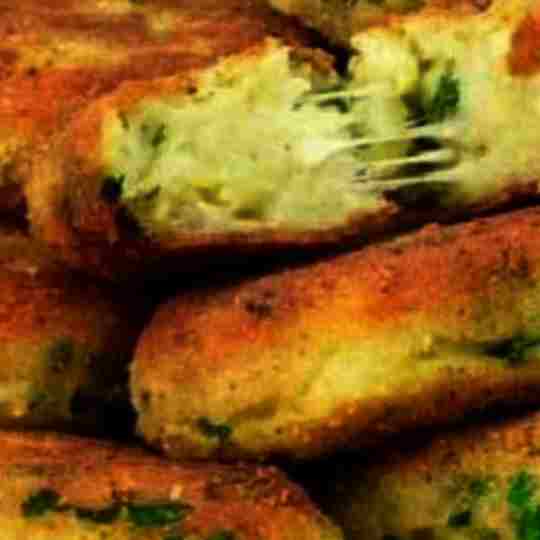 Take a portion of the potato mixture and form it into a pancake. Cover the pancake with breadcrumbs on both sides.