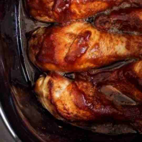 3. Pour over ½ cups of bbq sauce and smooth to cover the tops of the chicken legs.
