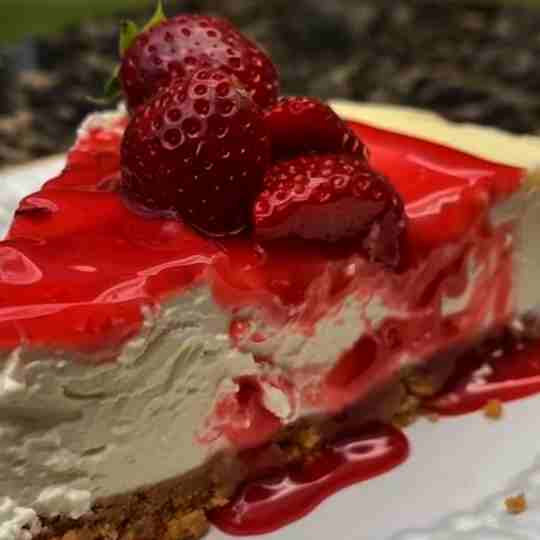 Delightful and indulgent, Strawberry Cheesecake has a foundation of rich, creamy cheesecake and a topping of vivid, sweet strawberry sauce. The rich, creamy flavor of traditional cheesecake meets the bright, juicy flavor of ripe strawberries in this delectable dessert. Sour cream gives the creamy filling a light, airy texture, and the crunchy, buttery cookie crumb shell adds a contrast with every mouthful. This dish will be the talk of the town thanks to its glossy strawberry topping that has been spiked with lemon and vanilla.