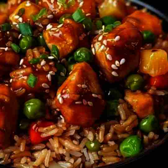 Enjoy your homemade Sweet and Sour Chicken with Fried Rice!