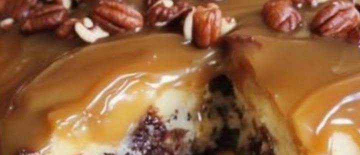Adecadent, layered dessert that combines rich chocolate, buttery caramel, crunchy pecans, and a moist German chocolate cake base—this 9×13-inch treat is pure indulgence in every bite. Inspired by classic turtle candies, this easy bake delivers all the flavors you love: gooey, nutty, chocolatey, and utterly irresistible.Why You’ll Love This RecipeThis isn’t just a sheet cake—it’s a candy bar reborn as dessert. With a soft German chocolate crumb, a molten layer of warm caramel and toasted pecans, and a final drizzle of chocolate frosting, it’s like eating a homemade turtle candy with a fork. The best part? It starts with a cake mix for speed and ease, but tastes like you spent hours baking.Perfect for:Holiday desserts (Christmas, Easter, birthdays)Potlucks and family gatheringsMake-ahead treatsGifting or sharing with neighbors “I brought this to my book club,” said one home cook. “They asked if I’d been baking all day—but it took less than 10 minutes to mix!” IngredientsFor the Caramel-Pecan Layer1 (11 oz / 312g) bag caramel bits (like Kraft or Werther’s)¾ cup (1½ sticks / 170g) unsalted sweet cream butter, melted½ cup (120ml) evaporated milk2 cups (200g) chopped pecans, lightly toasted (see tip below)1 cup (175g) semi-sweet chocolate chipsFor the Cake1 (18.25 oz) box German chocolate cake mix (any brand)3 large eggs, room temperature⅓ cup (80ml) canola oil (or vegetable oil)1 cup (240ml) whole milkFor the Finish1 container (about 16 oz) chocolate fudge frostingExtra chocolate chips and chopped pecans, for topping (optional)Step-by-Step Instructions1. Preheat & PrepPreheat oven to 350°F (175°C).Lightly grease a 9×13-inch baking dish with nonstick cooking spray—no need to flour.2. Make the Cake BatterIn a large bowl:Combine cake mix, eggs, oil, and milk.Beat with a hand mixer on medium speed 1–2 minutes, until smooth and well blended. No lumps? Scrape down the bowl halfway through. 3. Bake the First LayerPour half of the batter into the prepared pan and spread evenly.Bake 15 minutes, until set but not fully cooked.Remove from oven—leave oven on.4. Make the Turtle FillingWhile cake bakes:In a saucepan over medium heat:Combine caramel bits, evaporated milk, and melted butter.Stir constantly 3–5 minutes, until smooth, creamy, and fully melted.Remove from heat.Stir in pecans and 1 cup chocolate chips.5. Assemble the LayersCarefully pour the warm caramel-pecan mixture over the partially baked cake layer.Spread gently with a spatula—work quickly before it sets.Pour the remaining cake batter over the top and carefully spread to cover completely.6. Final BakeReturn to oven and bake 20–25 minutes, until:Top is golden brownA toothpick inserted near the edge comes out clean Do not overbake—the center may look soft, but it firms up as it cools. 7. Cool & FrostLet cool completely in the pan on a wire rack (~2 hours).Once cool, spread the chocolate fudge frosting evenly over the top. Pro Tip: Let frosting sit at room temp 15 mins to soften—or microwave 10 seconds for easy spreading. 8. Garnish & ServeSprinkle with extra chocolate chips and chopped pecans for bakery-style flair.Slice and serve at room temperature. Optional finish: Drizzle with extra caramel sauce before serving. You Must KnowToast the pecans first —spread on a tray and bake at 350°F for 6–8 mins until fragrant. Deepens flavor!Don’t skip cooling —warm cake melts the frosting and makes it runny.Use real evaporated milk —not sweetened condensed milk (that’s for dulce de leche!).Tastes better the next day! Flavors meld beautifully overnight.Storage TipsStore covered at room temperature for up to 2 days, or refrigerate for up to 5 days.Reheat individual slices in microwave (10–15 seconds) for warm, gooey texture.Freeze for up to 3 months —wrap tightly and thaw overnight before serving.Ingredient SubstitutionsGerman chocolate mixDevil’s food or chocolate cake mixFor deeper chocolate flavorCaramel bitsSoft caramels (unwrapped) + 2 tbsp milkMelt together slowlyPecansWalnuts or almondsFor different crunchEvaporated milkRegular milk (less rich)Avoid water or substitutesChocolate frostingHomemade ganache or whipped chocolateUpgrade optionServing SuggestionsServe with vanilla ice cream or whipped cream.Great for dessert tables, baby showers, or weekend brunches.Double the batch and gift one to a neighbor.Cultural ContextInspired by Southern candy traditions and American sheet cakes, this recipe honors the beloved “turtle” candy—chocolate, caramel, and pecans—by turning it into a shareable dessert. Found at church basements, holiday tables, and potluck lines alike, it proves that great food doesn’t have to be fancy—just full of heart, heat, and sweetness.Pro TipsDouble the recipe? Yes—perfect for large gatherings.Want more caramel flavor? Add ½ tsp sea salt to the caramel layer for salted caramel twist.Make ahead: Bake cake 1–2 days ahead. Frost and garnish before serving.Label your dish: People will ask for the recipe.Say “ready?” before slicing —it’s part of the ritual.Frequently Asked QuestionsQ: Can I use a bundt pan instead?A: Yes! Grease well and adjust baking time—check at 35 mins. May need longer.Q: Why did my caramel harden too fast?A: Likely cooled too much before spreading. Keep warm over low heat if needed.Q: Is this gluten-free?A: Only if using GF German chocolate cake mix and verifying all ingredients.Q: Can I make it without the frosting?A: Yes—but it adds richness. Try a dusting of powdered sugar instead.Q: Can I air fry the pecans?A: Absolutely! Air fry at 350°F for 5–7 mins, shaking halfway.Allergy InformationContains: dairy (butter, milk, frosting), eggs, tree nuts (pecans), wheat (cake mix).Gluten-free option: Use certified GF cake mix.Nut-free: Not unless substituting seeds for pecans.Always check labels—especially on cake mixes, caramel bits, and frostings.Nutrition Facts (Per Serving – Approximate)Based on 12 servingsCalorie