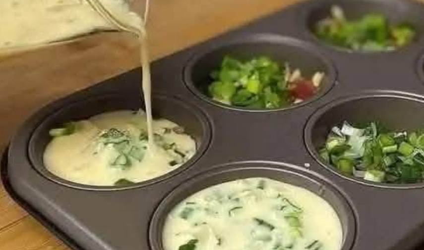 In a large mixing bowl, crack the six eggs and beat them until well combined. The eggs serve as the base of the omelet muffins, so ensure they’re thoroughly mixed to create a smooth texture.