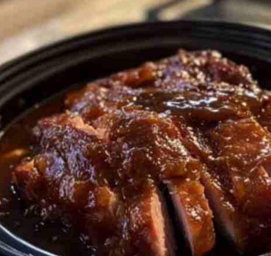 Ingredients:Amount of IngredientsCooked ham weighing 5-6 pounds.1 cup of brown sugarHalf a cup of apple cider vinegar.Half a cup of water1 tablespoon of mustard powderHalf a teaspoon of ground cloves.1/4 teaspoon of cinnamon powder1/4 teaspoon of powdered gingerInstructions:Put the ham in the slow cooker with the flat side facing down.Mix the brown sugar, apple cider vinegar, water, mustard, cloves, cinnamon, and ginger in a small bowl.Pour the mixture on top of the ham, making sure it covers it completely.Put the lid on the slow cooker and cook on low for 6-8 hours until the ham is warm and soft.From time to time, brush the ham with the juices from cooking.After cooking, take out the ham from the slow cooker and allow it to sit for a few minutes.Cut the ham into slices and serve it, pouring over the juices from cooking.Enjoy!