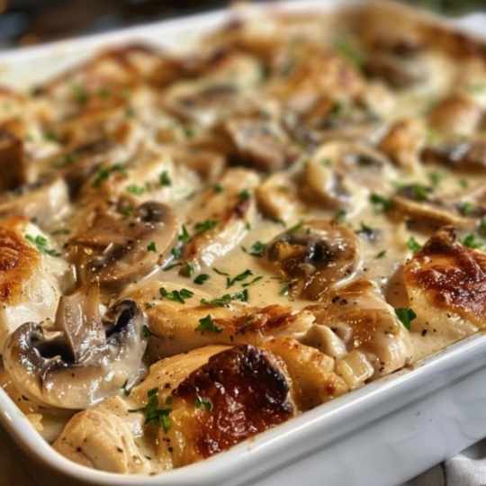 A hot, bubbling bake right from the oven has a really soothing effect. A variation on the traditional Caesar salad, this Creamy Caesar Chicken and Mushroom Bake turns the delicious tastes into a filling and comforting meal. Inspired directly by the taste of that zesty Caesar dressing combined with delicate chicken and earthy mushrooms, is this dish.