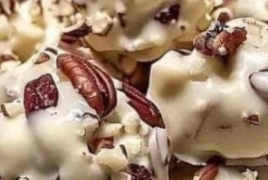 Stir in the chopped pecans, dried cranberries, vanilla extract, and salt (if using) until everything is well coated with the melted white chocolate.